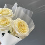 На фото букет из 3 кремовых роз. В составе: роза 3 шт, дизайнерская упаковка 1 шт, атласная лента 1 шт, . Все цветы свежие и ароматные, букет красиво оформлен и отлично подходит для подарка. Доступна доставка цветов или самовывоз.